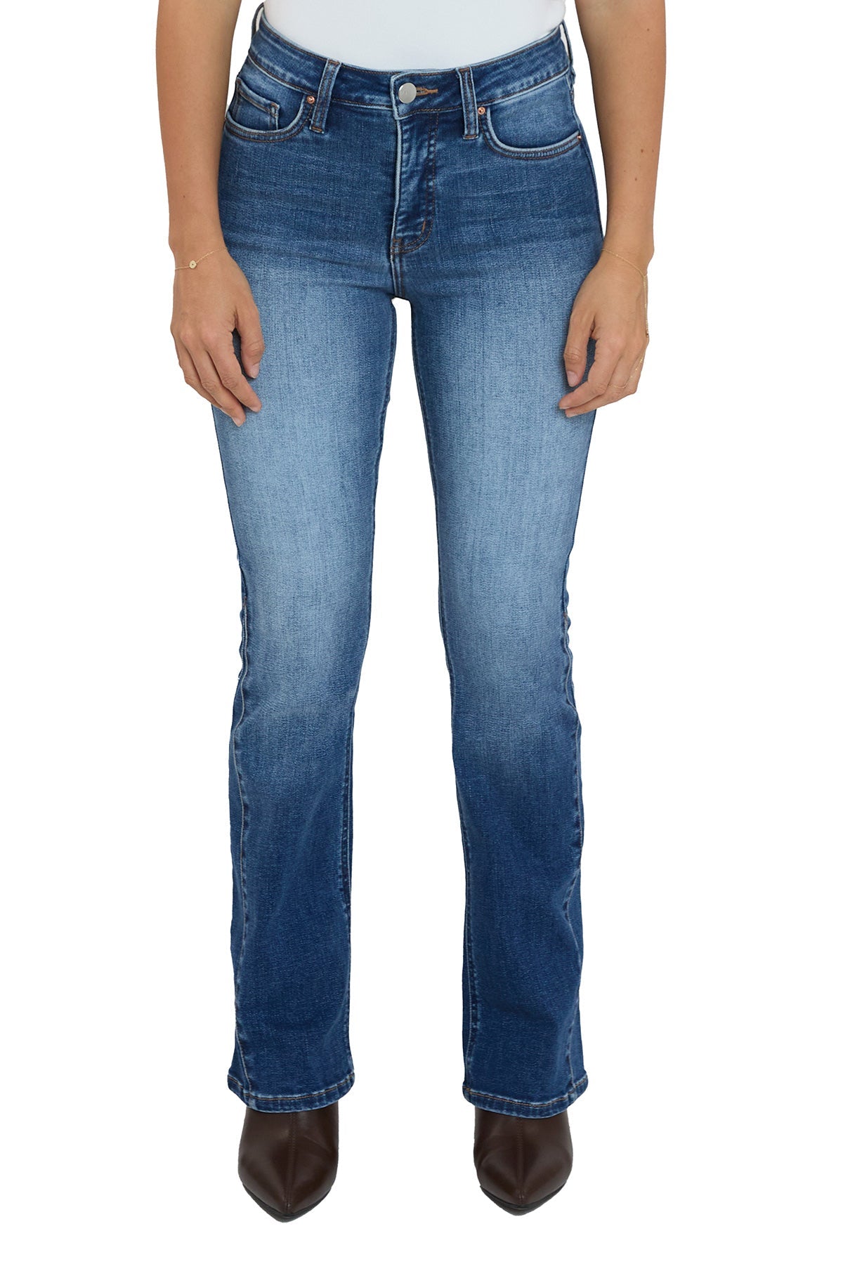 Classic shape meets modern detail in the Mia High Rise Bootcut Jeans. Sitting high on the waist for a flattering fit, these jeans gently flare from the knee for a timeless bootcut design. Angled outseam stitching adds a contemporary, fashion-forward touch, elevating this everyday essential.