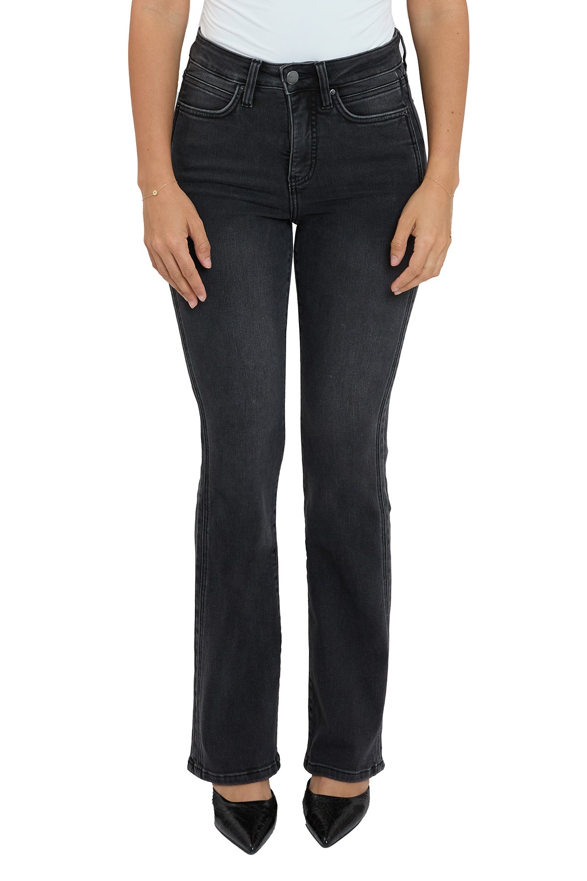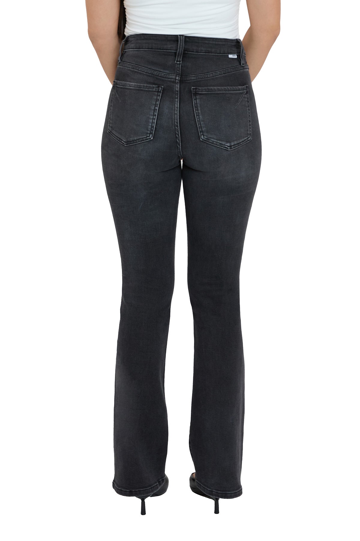 Mia High Rise Bootcut Slimmers Jeans, designed to enhance your curves with a slimming effect. The high-rise waist cinches comfortably, while the bootcut leg creates a balanced, flattering shape. Featuring a 1-button closure and durable zipper, these jeans provide a secure, all-day fit.